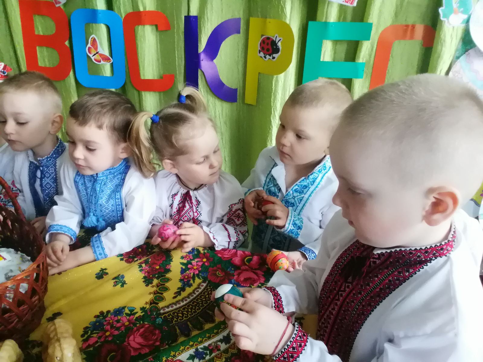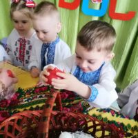 Так, 22 квітня в нашому закладі відбулася музична розвага «Писанка Великодня». Дітей знайомили з історією свята Пасхи, народними звичаями та традиціями. Вихованці, в різних видах зображувальної діяльності, прикрашали писанки. Під час свята діти грали в ігри, співали пісні про свято, писанку, вербу; танцювали таночки; грали інсценівки, складали великодній кошик та пригощались пасками.