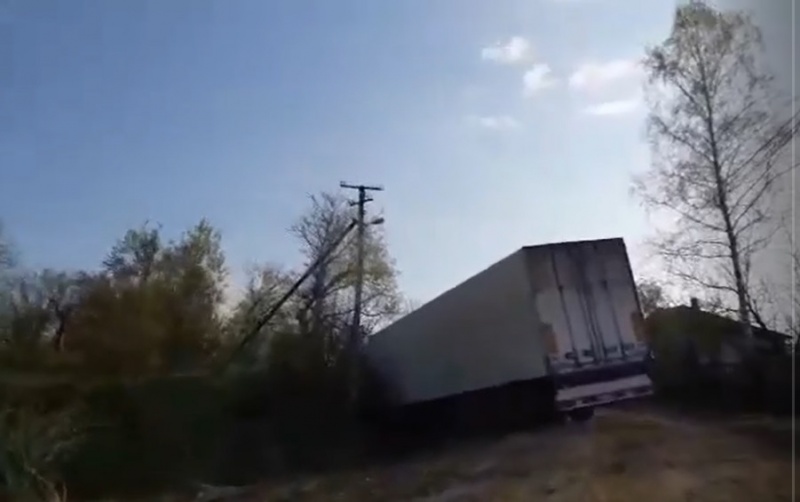 За їхніми словами, вантажівка стоїть там від суботи, 30 квітня. Мовляв, водій не впорався з керуванням, з’їхав у кювет і тепер не може виїхати. Приїжджала вчора, 1 травня, поліція, проте витягувати фуру не поспішає: з’ясувалося, що там є проблеми з документами – чи то на саме авто, чи на вантаж. Тому, за словами мешканців, у поліції заявили, що фуру витягнуть тоді, коли приведуть до ладу документи.