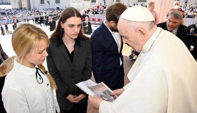 Повідомляють, що папа Римський прийняв дружин українських бійців наприкінці своєї щотижневої загальної аудієнції у середу.