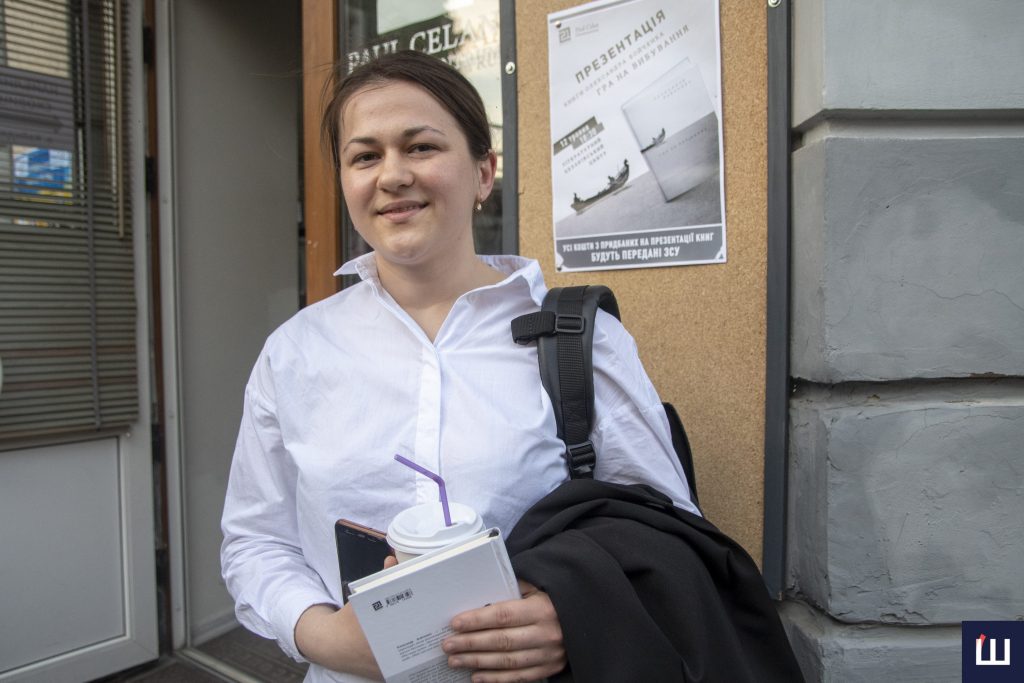 Оксана Кравцова, що працює менеджеркою в Гончаренко центрі, прийшла на презентацію з подругою. Каже, що вони давно слідкують за творчістю письменника: