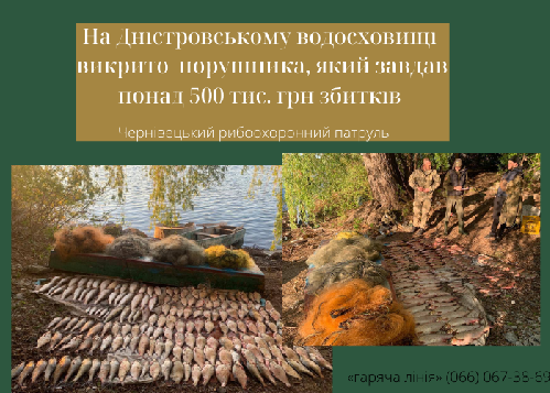 Чернівецький рибоохоронний патруль закликає громадян дотримуватись норм природоохоронного законодавства. У разі виявлення порушення – прохання терміново повідомляти на «гарячу лінію» Управління: (066) 067-38-69.