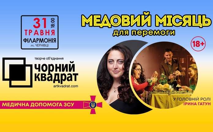 31 травня 2022 року творче об’єднання «Чорний квадрат» на сцені обласної філармонії покаже виставу «Медовий місяць для перемоги». У головній ролі Ірина Гатун. Захід розпочнеться о 18.00 годині.