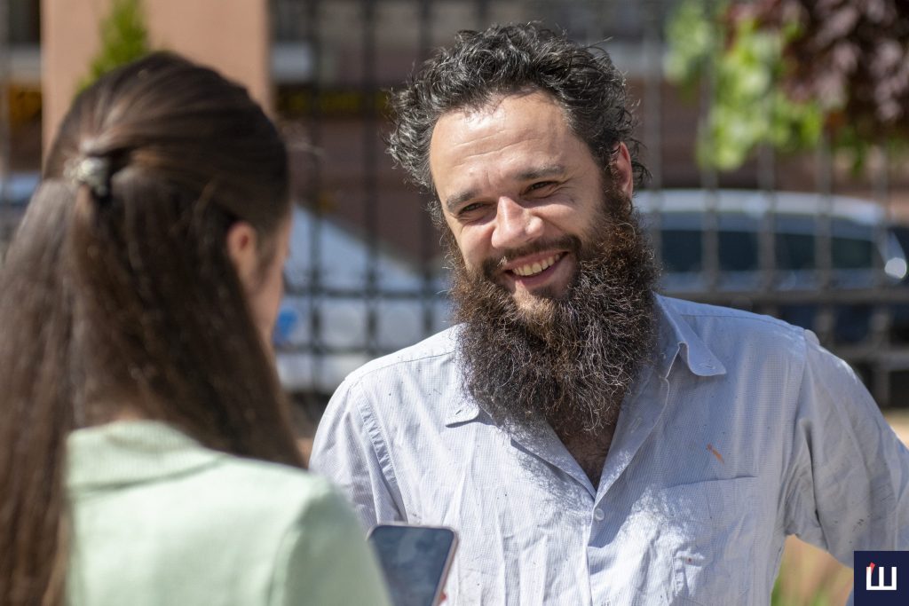 «Моя частина – біля огорожі, дороги, тому я зробив її яскравою. Я думав, що намалюю тут клітку, з якої звільняєтья пташка. А потім я зрозумів, що клітку вже формує загорожа. Людина, коли йде вулицею, вже бачить цю будівлю мов у клітці. Тому внизу я намалював квіти, які ростуть, ніби за гратами. А у верхній частині – птаху», – розповідає художник.