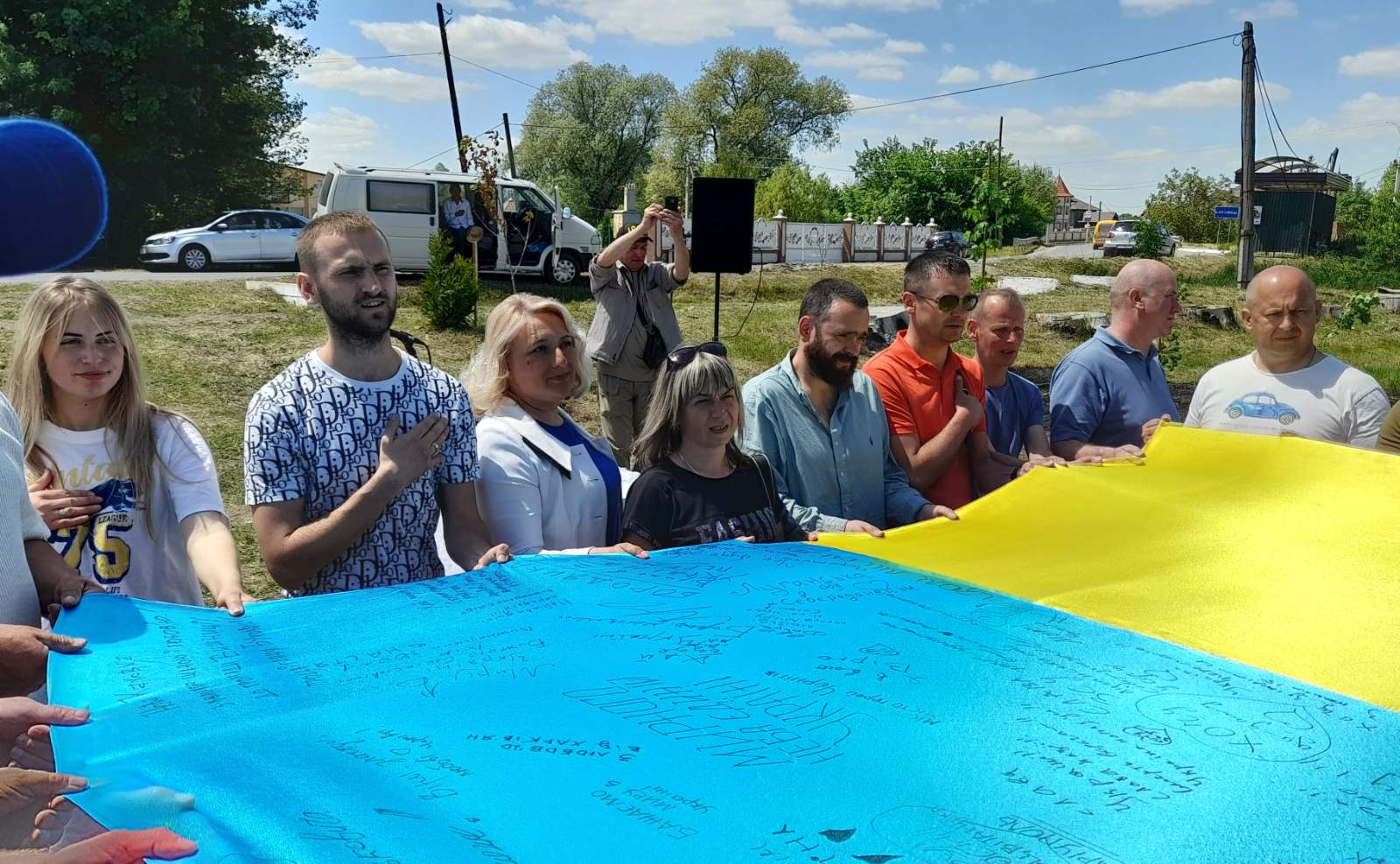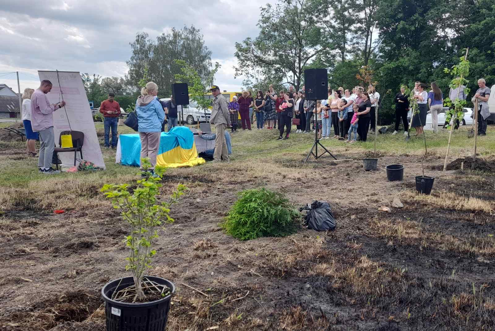 Атмосфера заходу дуже щира: висаджують деревця сім’ями, доєдналися учні місцевої школи на чолі з вчителями та директором МИКОЛОЮ БОДНАРЮКОМ, на акцію приїхали старости та переселенці з інших сіл громади. Люди знайомляться, підбадьорюють одне одного словами віри в перемогу!