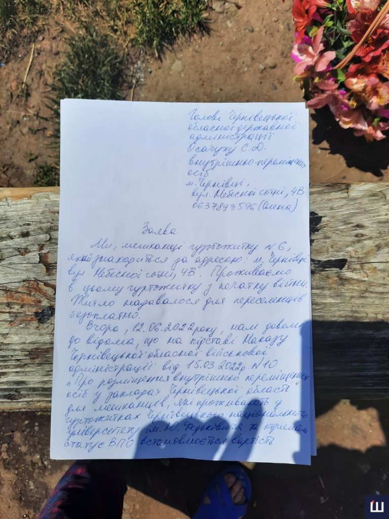 Мешканці гуртожитку №6 написали лист до голови Чернівецької військової адміністрації Сергія Осачука з проханням розібратися в ситуації та «встановити умови проживання в гуртожитку в рамках чинного законодавства».
