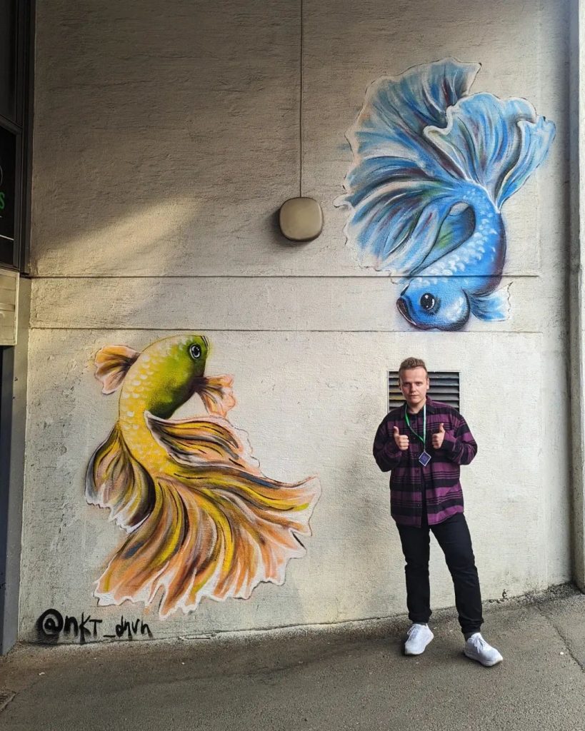 Чернівецький художник Микита Донован (SLAM) намалював у столиці Норвегії, Осло, мурал із рибками у кольорах прапора України в рамках фестивалю стріт-арту «Lokka Lykke». Про це Микита повідомив на власній інстаграм-сторінці.