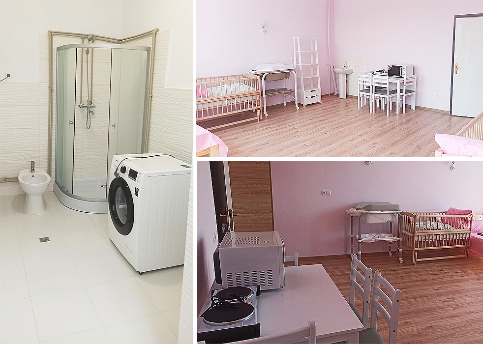 У двох лікарняних палатах обладнаних практично всім необхідним для чотирьох жінок, які після пологів перебуватимуть тут зі щойно народженими немовлятами.