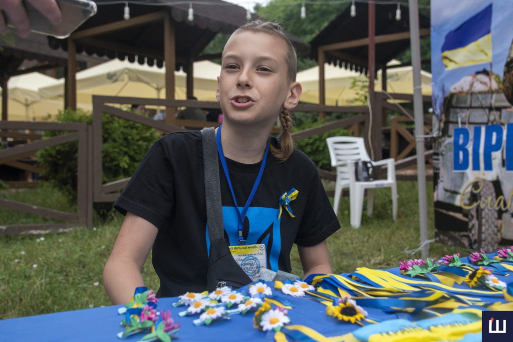 «Я вже давно цим займаюся, не тільки на ярмарку. Збираю кошти окремо на ЗСУ та на бандеромобіль», — каже хлопець.