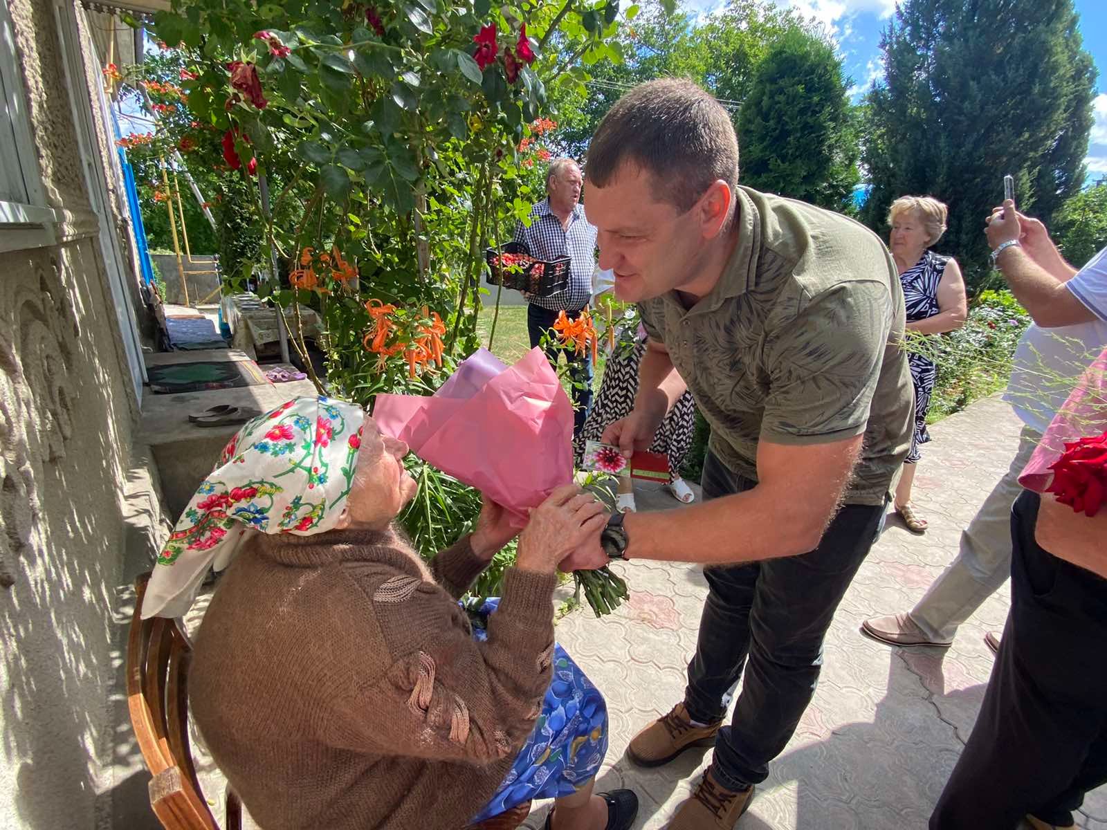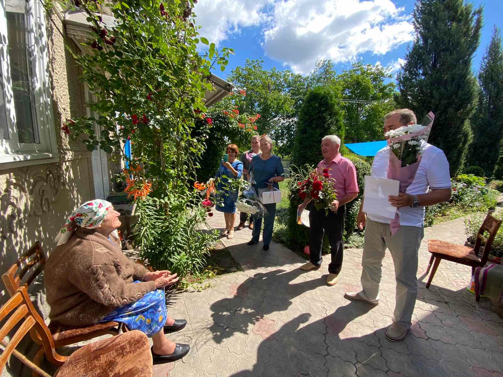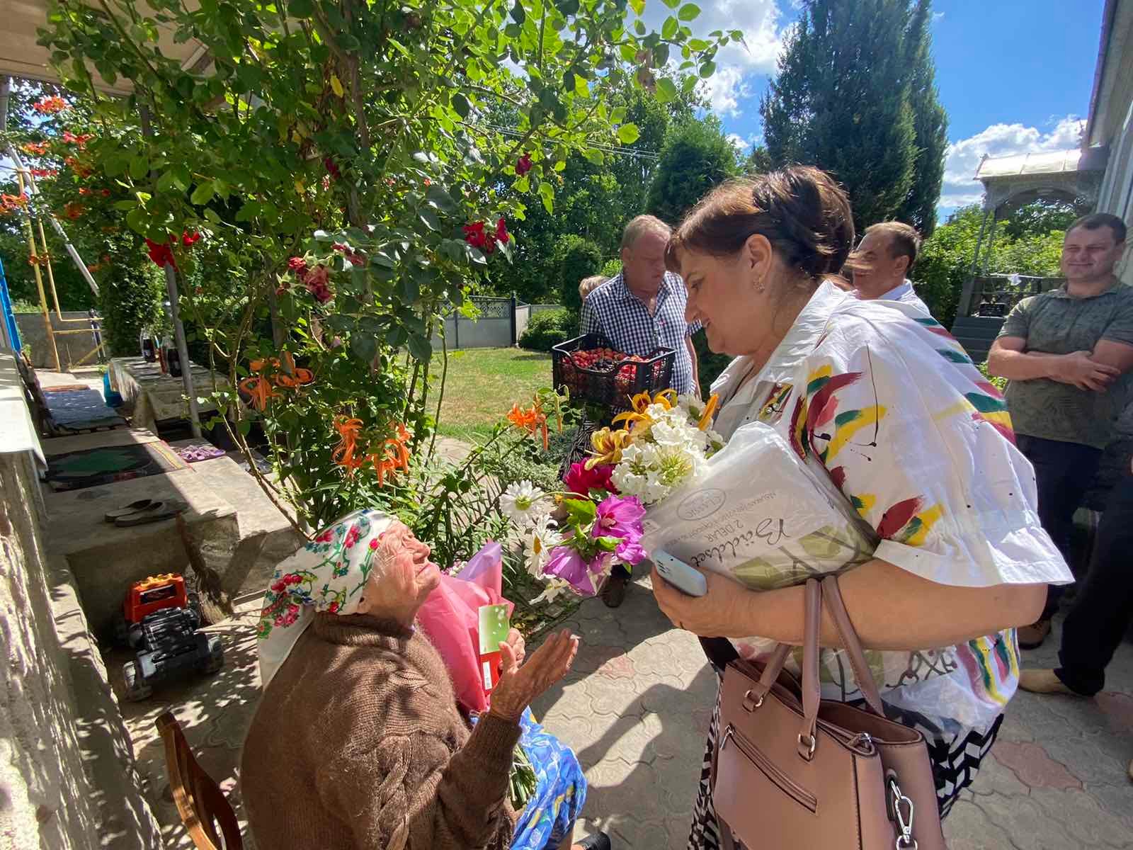 З нагоди поважного ювілейного Дня народження гості висловили жінці слова вдячності і шани за багаторічну сумлінну працю, за мудрість та досвід, які вона передала своїм дітям, онукам та правнукам, та вручили квіти і подарунки.