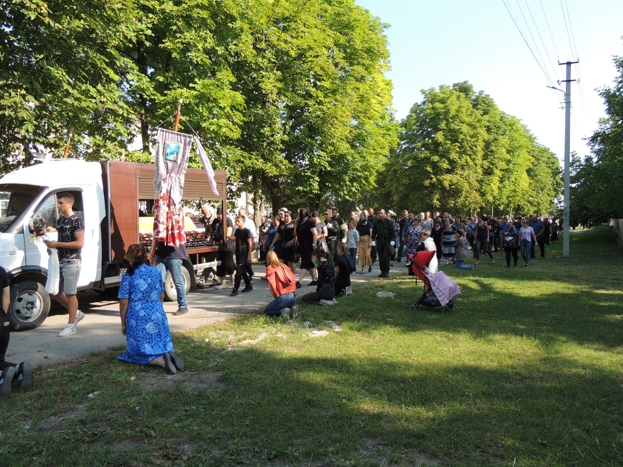 Жителі громади – старі і малі, сивочолі і зовсім юні схилили голови в жалобі, зустрічаючи полеглого воїна-захисника та проводжаючи його до місця останнього спочинку.