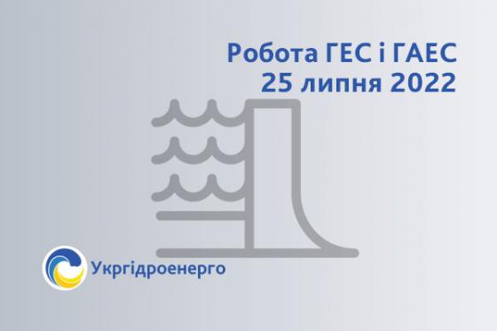 РОБОТА ГЕС І ГАЕС СТАНОМ НА 12:00 25 ЛИПНЯ 2022 РОКУ