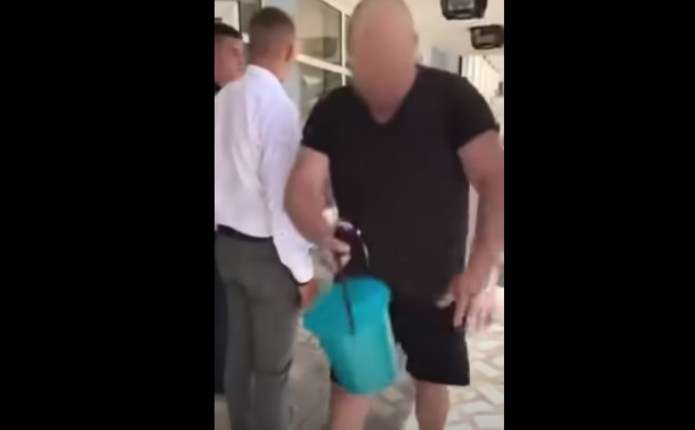 За матеріалами справи, після інциденту чоловік опублікував відео, як він обливає з відра викладачку свого сина та звинувачує у вимаганні хабара за успішне складання екзаменів.