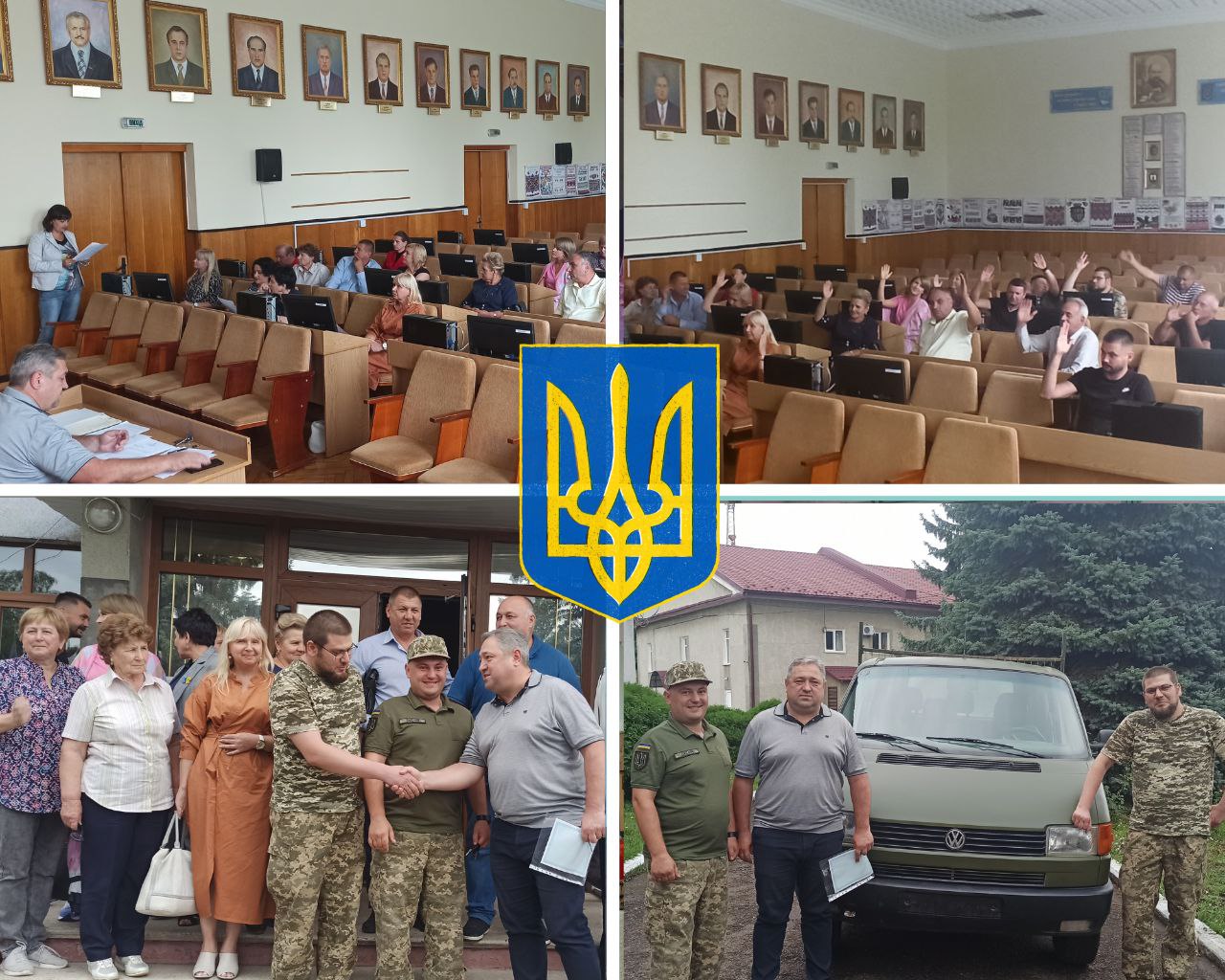 Військові прибули до громади, щоб здійснити транспортування чергового автомобіля, який був придбаний місцевими підприємцями та прийняли участь у засіданні виконкому.