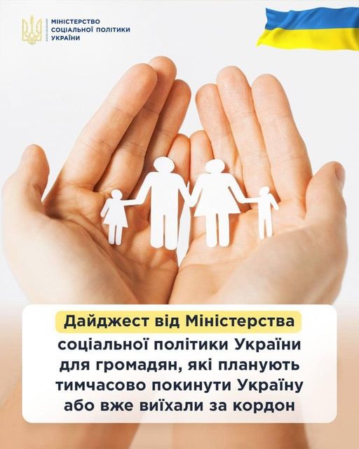 Міністерство соціальної політики України нагадує громадянам України, які планують або були вимушені покинути постійне місце проживання у зв’язку з воєнними діями російської федерації проти України про, «Дайджест від Міністерства соціальної політики України» на якому розміщено інформацію щодо умов тимчасового перебування громадян України у країнах-партнерах.
