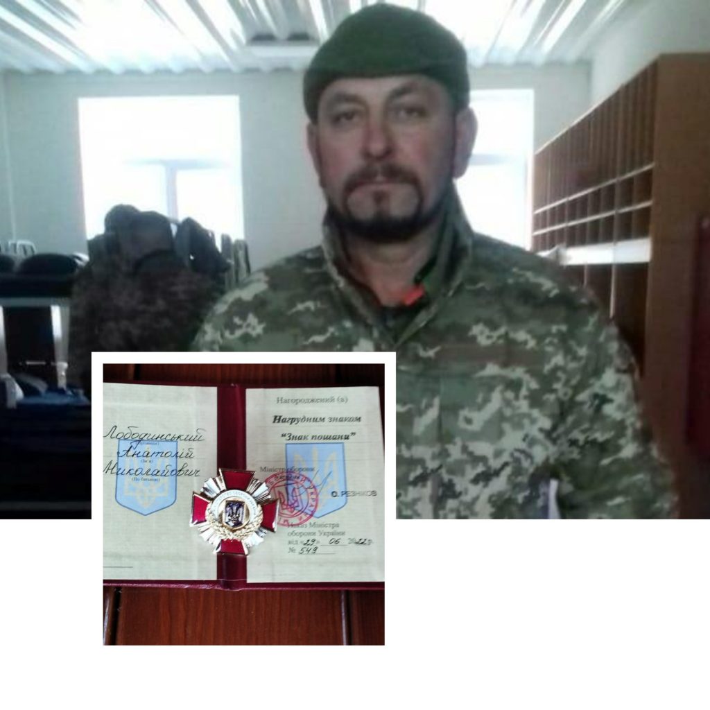 А наказом Міністра оборони України № 549 від 29.06.2022 року Анатолій Лободинський нагороджений нагрудним знаком «Знак пошани» за досягнення високих показників у військовій сфері діяльності України, бездоганну сумлінну службу.