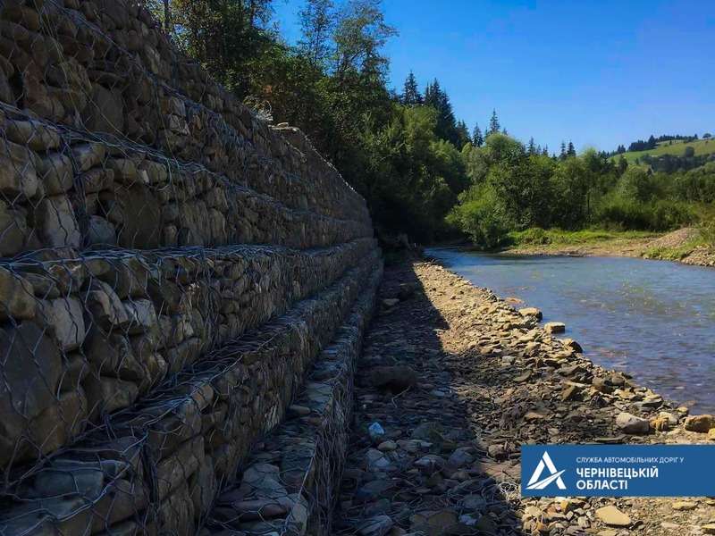 У селі Руська Вижницького району укріплюють гірську дорогу підпірною стінкою з габіонів. Штучну споруду облаштовують на відрізку, де дорога прокладена вздовж річки Сучава. Йдеться про ділянку дорогу Т-26-01 Чернівці – Вашківці – Путила – КПП «Руська», км 138+130 – км 138+430. Аварійно-відновлювальні роботи виконуються на місці, де було пошкоджено берегоукріплення. Про це повідомляє Служба автомобільних доріг у Чернівецькій області.