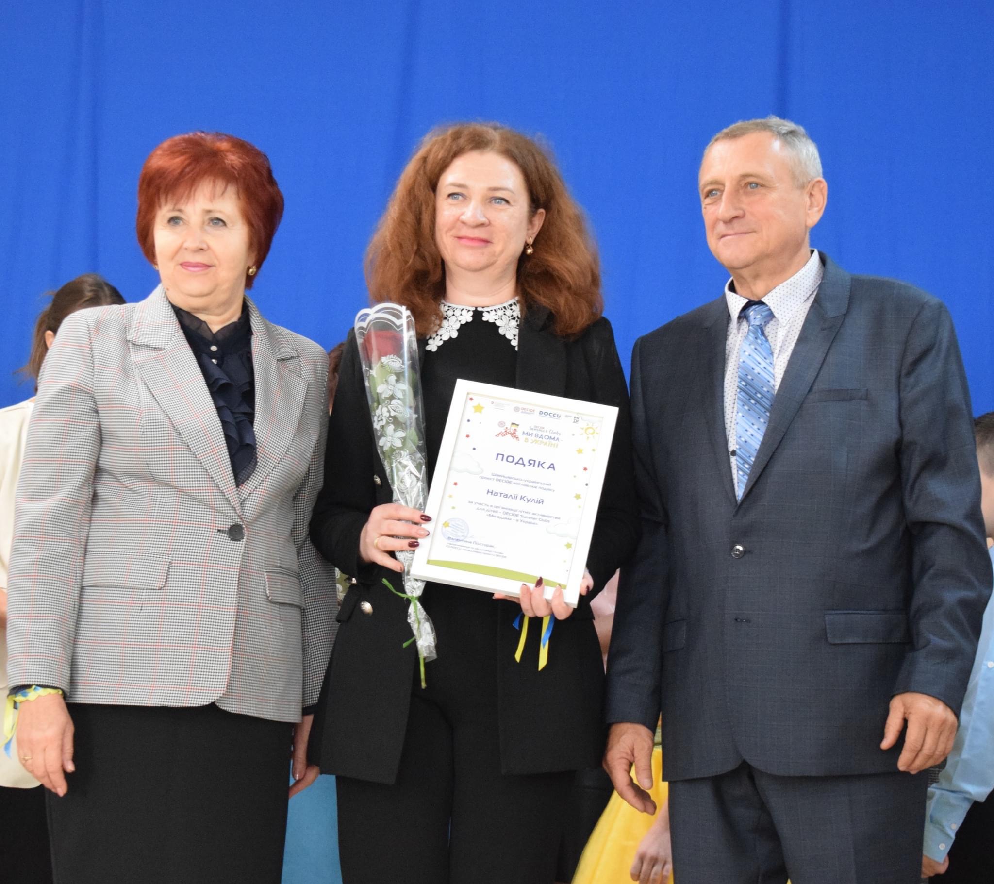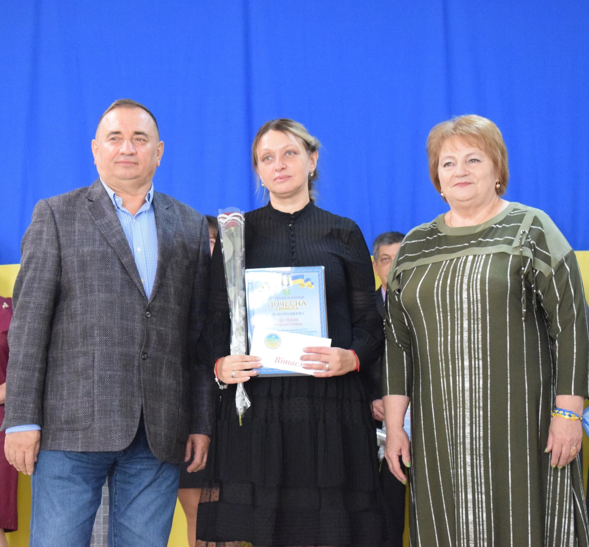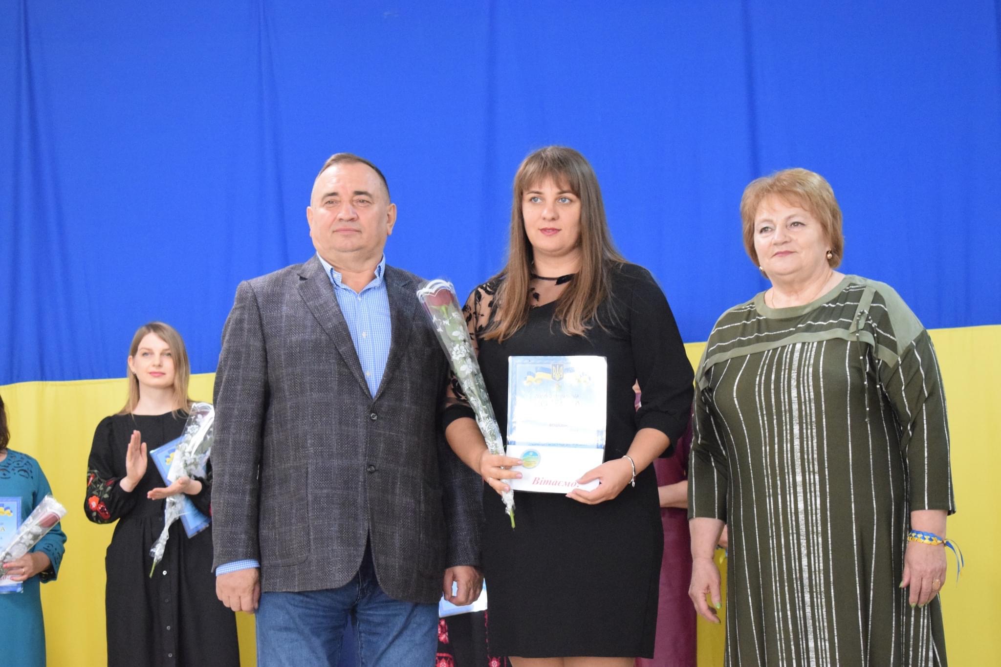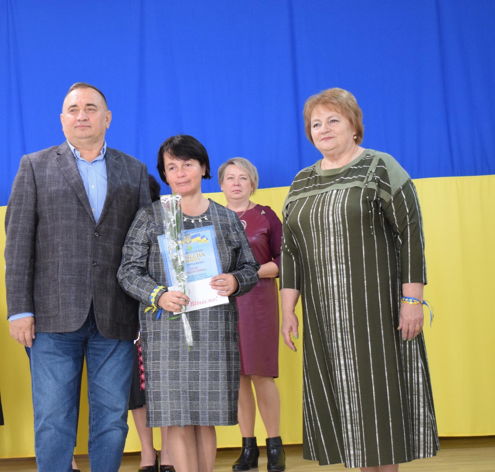 Мудрі й досвідчені, молоді й амбітні працівники освіти громади приймали вітання і від своїх учнів, які подарували присутнім цікаві патріотичні номери.
