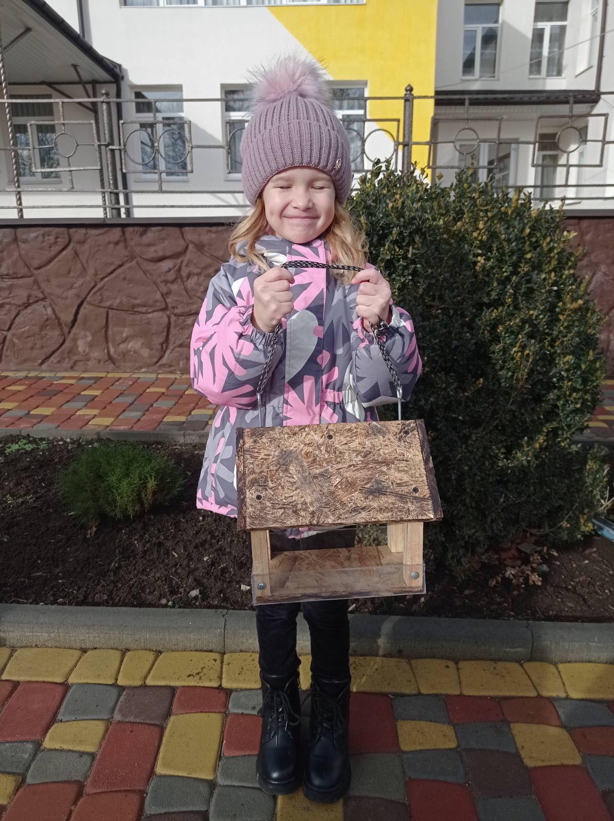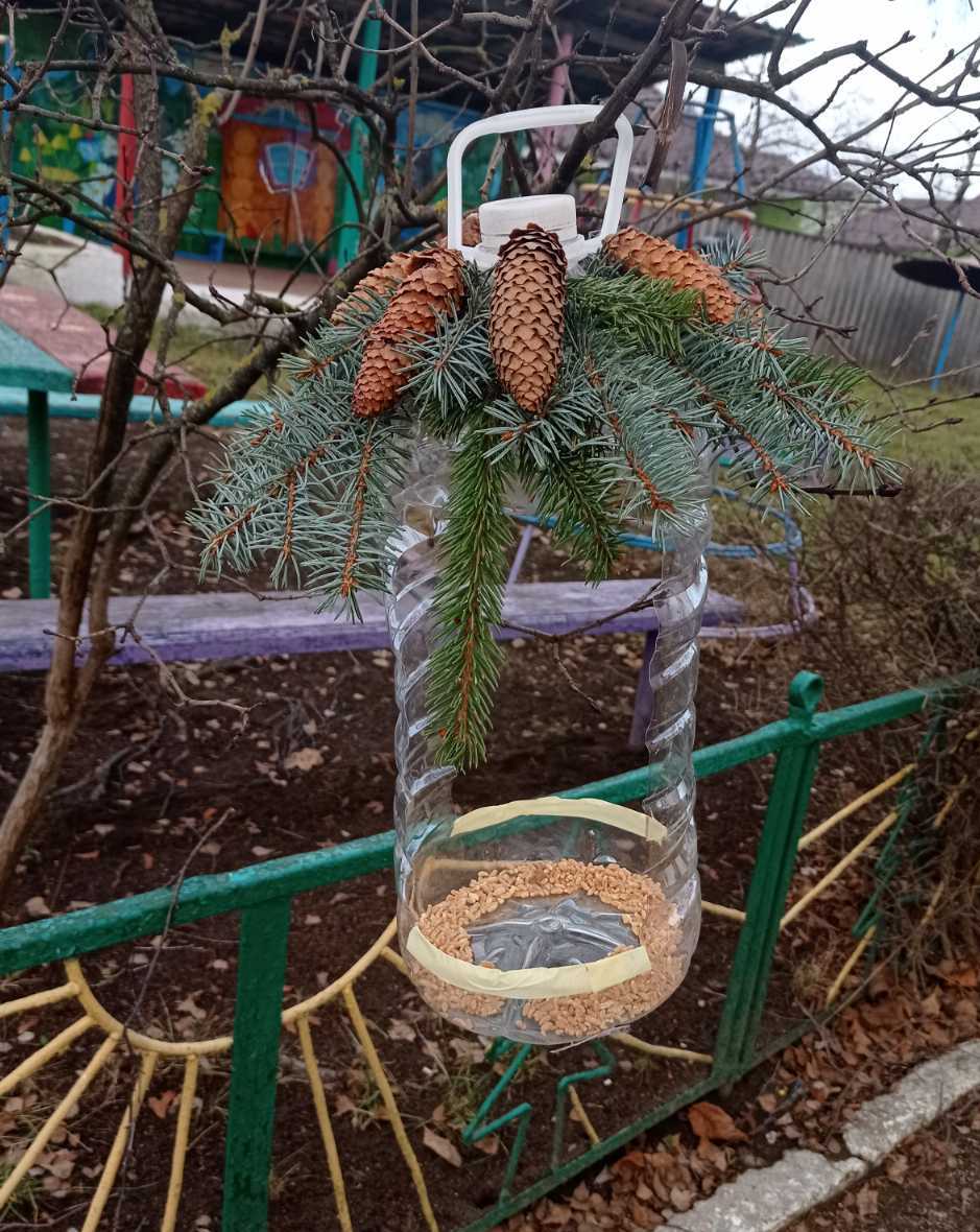 Батьками разом з малюками, були виготовлені годівнички різних типів та розвішені на території закладу. Учасники експериментували з матеріалами, формами, розмірами, стилями. Виготовляли годівнички з дерева, картону, пакетів, природних матеріалів. Деякі так захопилися, що змайстрували не лише одну годівничку, а й дві (батьки Кучерявої Каті).