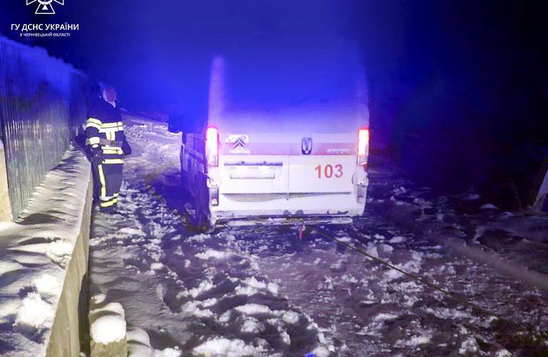 На Буковині рятувальники витягли зі снігового замету машину «швидкої» допомоги