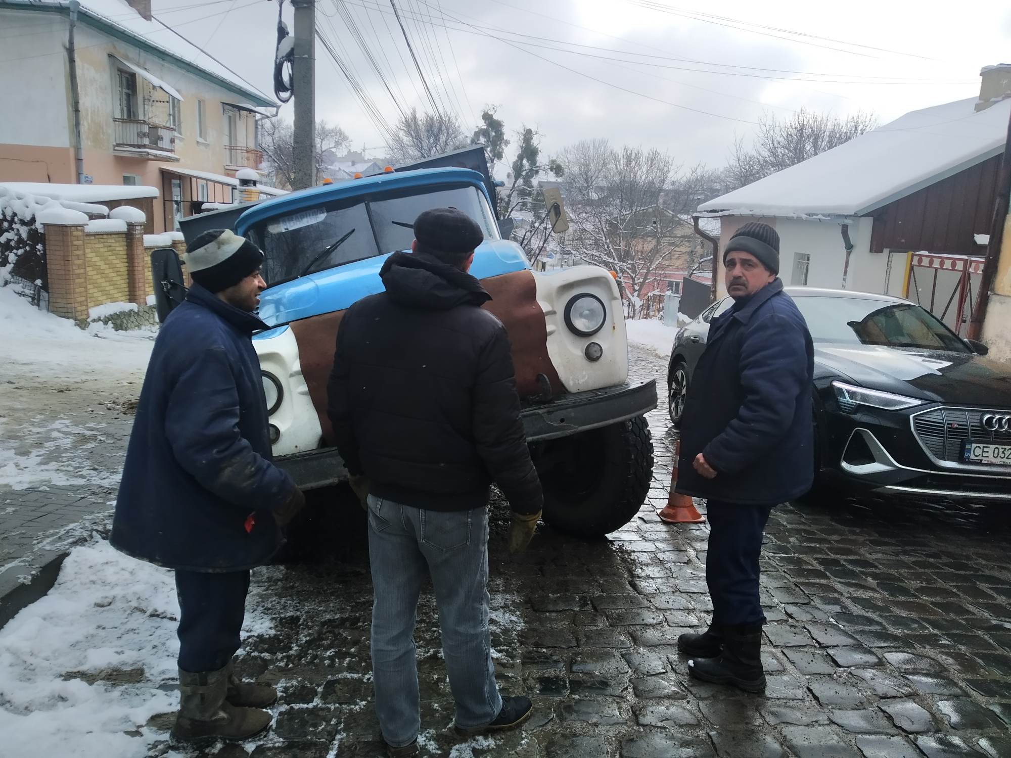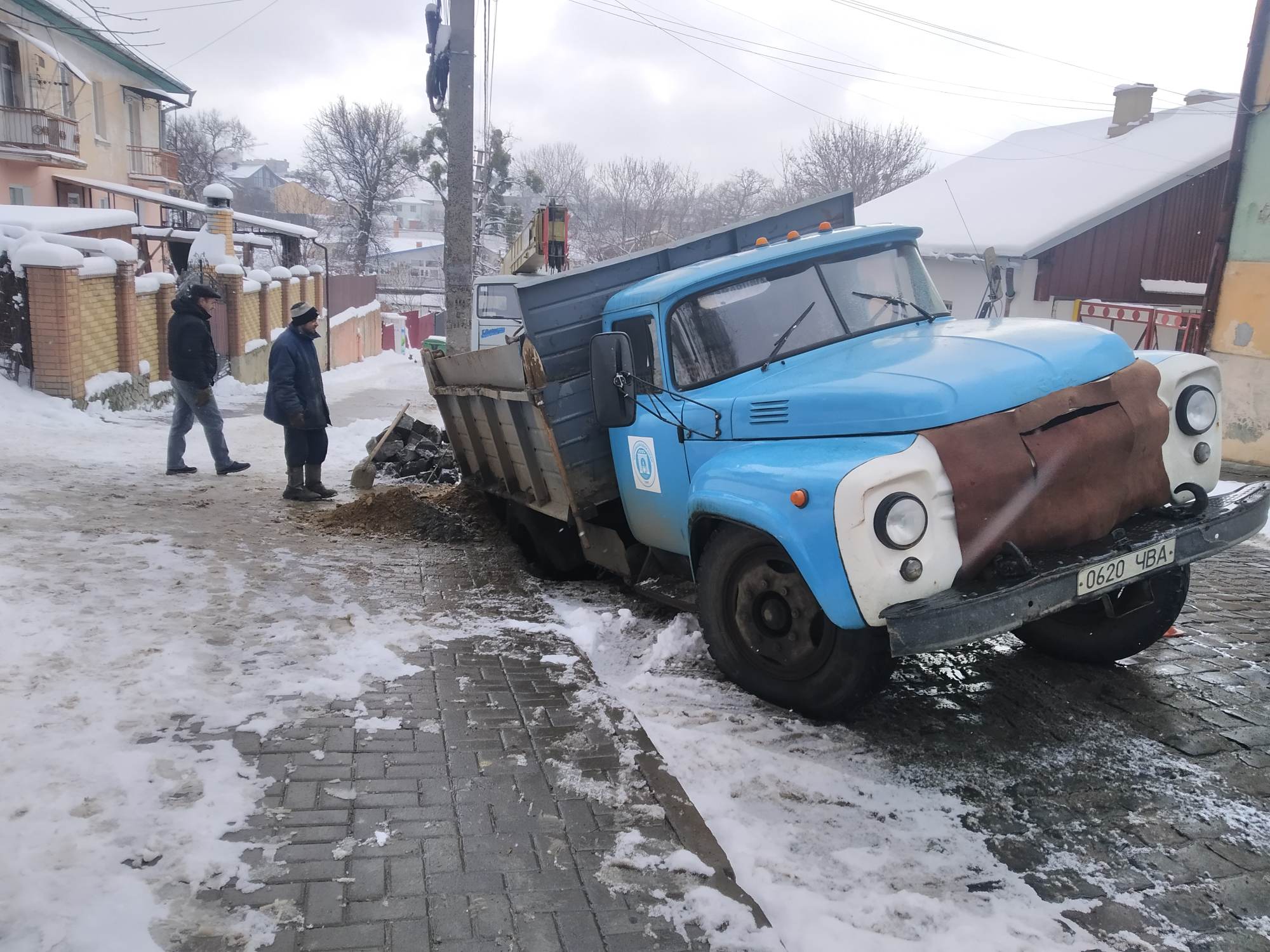 У Чернівцях, на вулиці 29 Березня, вантажівка КП “Чернівціводоканал” провалилася і застрягла в нещодавно розритій комунальниками ямі.