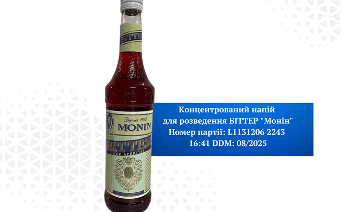 Повідомлення про те, що такий напій був виявлений на території України, надійшло від системи швидкого реагування по харчових продуктах та кормах (RASFF). Було встановлено, що концентрований сироп “Біттер Монін” експортували з Франції, а виробником зазначено GEORGES MONIN, France. В Україні напій отримував ТзОВ “ПРОБАР”, провулок Індустріальний, 23, м. Київ.