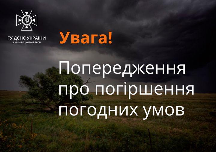 До уваги жителів Сокирянщини! Головне управління ДСНС України у Чернівецькій області попереджає про погіршення погодних умов