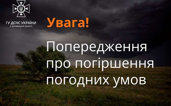 За інформацією Чернівецького гідрометцентру, 26 квітня 2023 року на території Чернівецької області та м. Чернівці очікується посилення північно-західного вітру 15-20 м/с. Про це повідомляє Головне управління ДСНС України у Чернівецькій області.