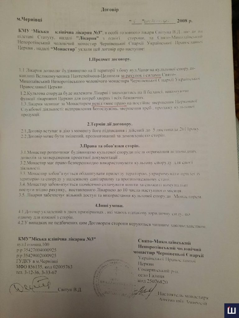 Шпальта відвідала каплицю на честь святого великомученика Пантелеймона Чернівецько-Буковинської єпархії, щоб дізнатися умови договору та чи дійсно рішення міської ради має юридичні наслідки для церкви.