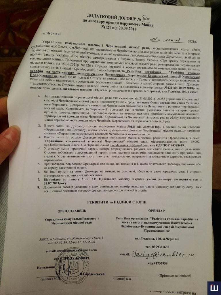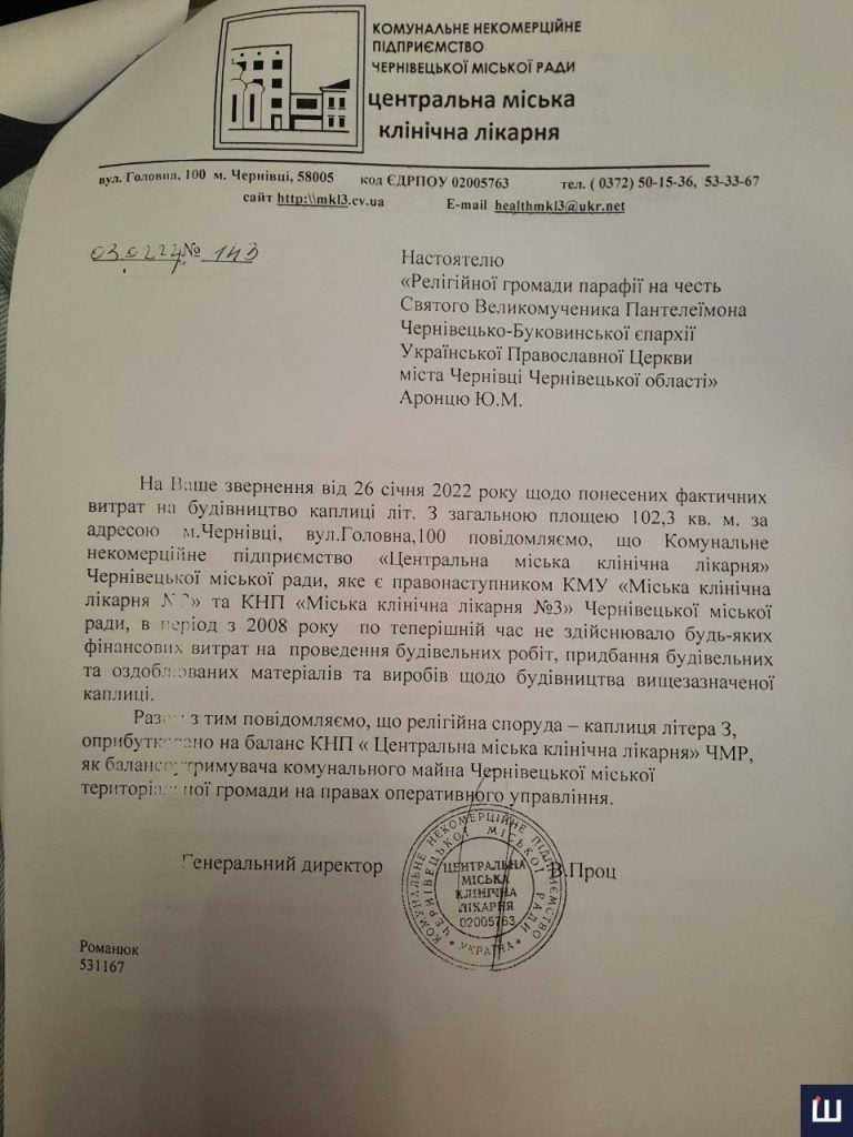 За словами монаха Луки, до 2015 року монастир укладав договір із лікарнею. Коли будівлю добудували – новим орендодавцем каплиці стало Управління комунальної власности Чернівецької міської ради. Так, термін останнього договору діяв від серпня 2021 року до 31 липня 2022 року. Водночас, відповідно до постанови КМУ №634, угода повинна була діяти впродовж воєнного стану та чотирьох місяців після його припинення.