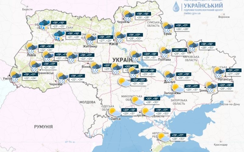 Стовпчики термометрів вдень покажуть від +27 до +32 градусів, а на заході +19 +24 градуси. Вночі температура опуститься до +15 +20 градусів.