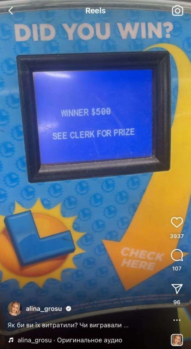 Спочатку Аліна гадала, що виграних коштів вона не отримає. Але ж коли співачка пішла обмінювати лотерейний білет на виграш, то їй видали 270 доларів. Тим часом Гросу захотіла ще раз випробувати свою вдачу. Аліна купила ще один лотерейний білет та виграла вже 500 доларів.