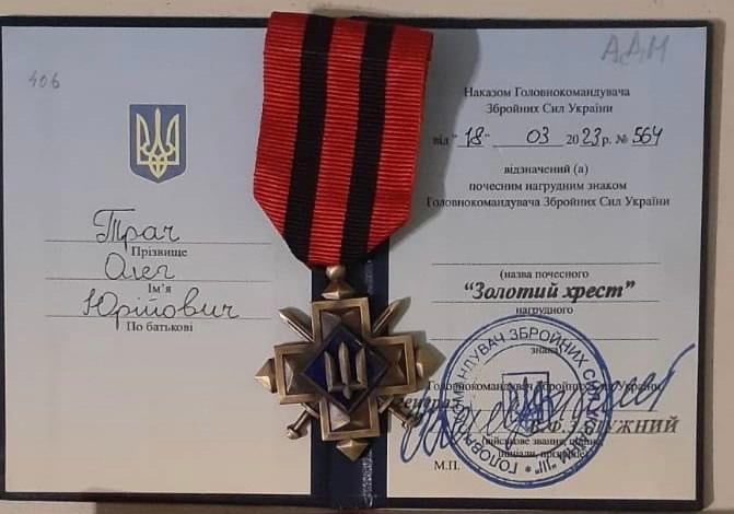 Олег Трач отримав нагрудний знак «Золотий хрест». Також воїна нагородили відзнакою Міністерства оборони України.