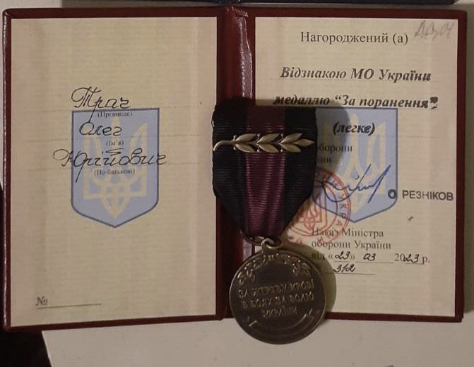«Олега відзначили медаллю “За поранення” — за жертву крові в боях за волю України», — йдеться у повідомленні.