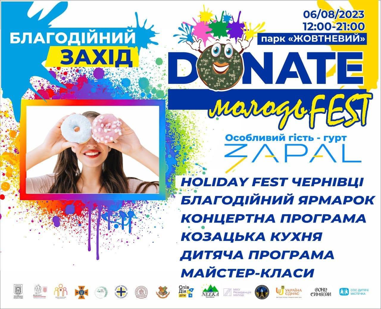 У неділю, 6 серпня, у Чернівцях відбудеться «Donate Молодь Fest».