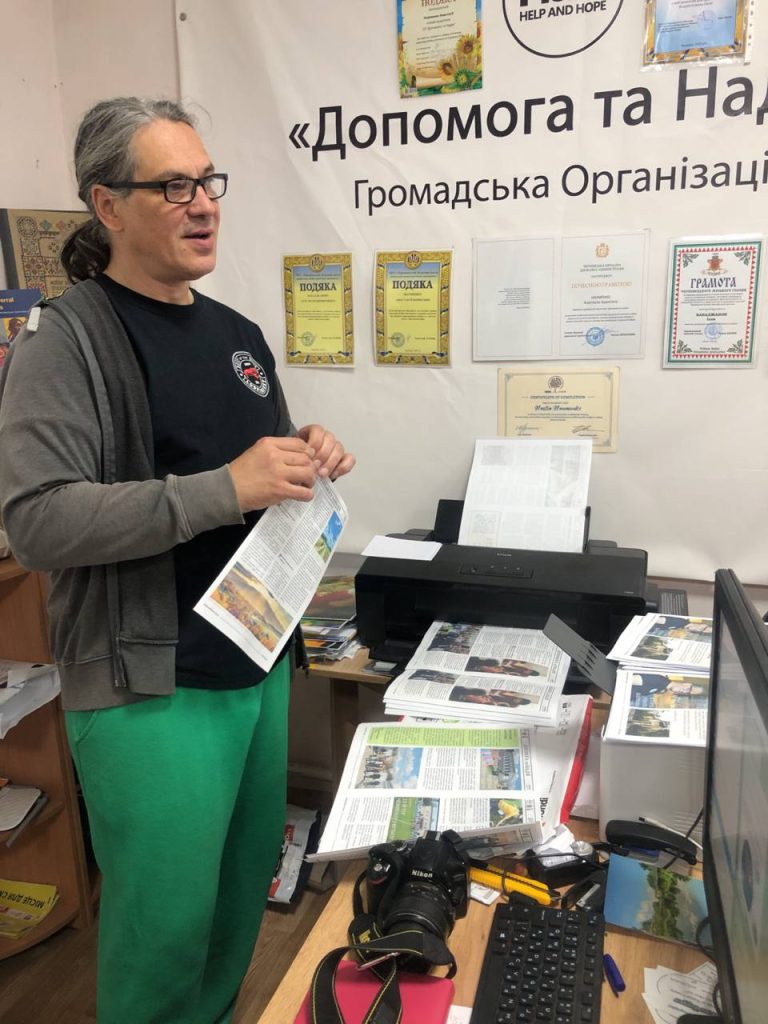 Троє вимушених переселенців на початку повномасштабної війни знайшли прихисток у Чернівецькому обласному центрі соціально-психологічної допомоги у Садгорі. Тут вони вирішили заснувати громадську організацію «Допомога та Надія», щоб допомагати місцевим ВПО. Цьогоріч у них виникла ідея створити безкоштовний інформаційний вісник – газету для місцевих переселенців, яку вони друкують та видають власними силами.