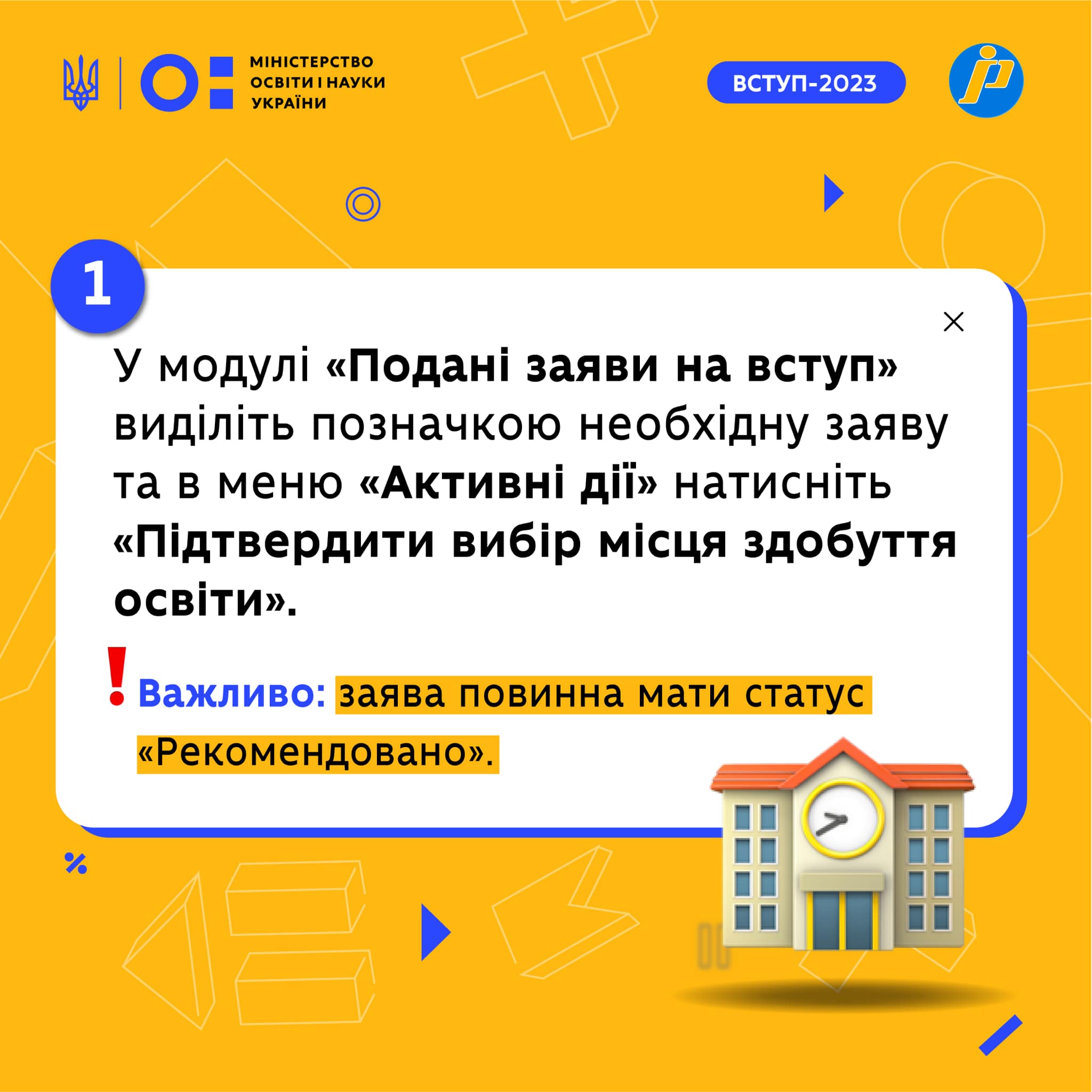 Підтвердити вибір місця навчання можна як в закладі освіти, так і віддалено. Детальніше про це тут: bit.ly/45fjw0t