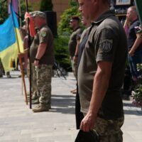 Попрощатись із Героєм у цей скорботний день прийшли рідні, близькі, друзі, товариші, колеги, побратими, однокласники, вчителі, керівництво міської ради, представники Другого відділу Дністровського РТЦК та СП, небайдужі громадяни – жителі міста Сокиряни та довколишніх сіл та міст.