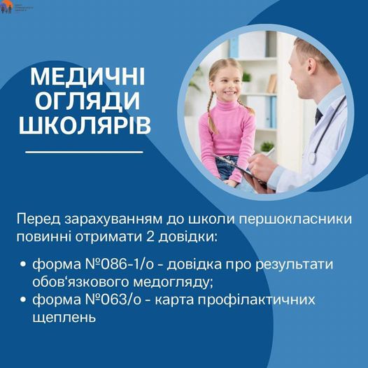 Пам’ятайте про здоров’я школяра (незалежно від форми навчання: очна чи дистанційна). Не забувайте про профілактичні скринінги, які допоможуть вашій дитині запобігти захворюванням (сколіоз, зниження гостроти зору, порушення психологічного стану тощо).
