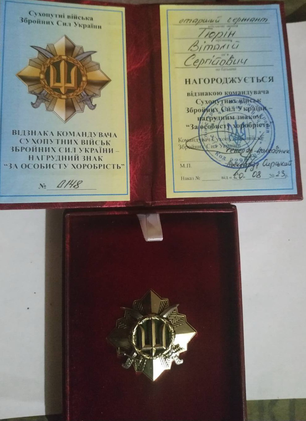 Старшого сержанта Віталія Тюріна нагороджено відзнакою командувача Сухопутних військ Збройних сил України – нагрудним знаком «За особисту хоробрість».
