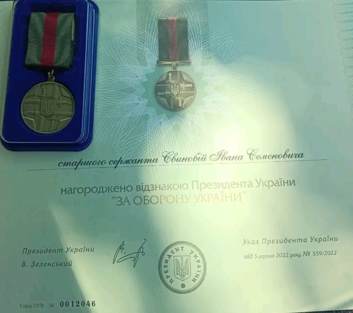 За проявлений патріотизм та зразкове виконання службових обов’язків щодо здійснення заходів із забезпечення національної безпеки та оборони, відсічі і стримування ворога відзнакою Президента України «За оборону України» відзначено Івана Семеновича Свинобоя.