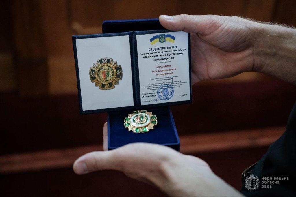 Військових з Буковини посмертно відзначили нагородами Чернівецької обласної ради «За заслуги перед Буковиною». Відзнаки вручили родинам загиблих.