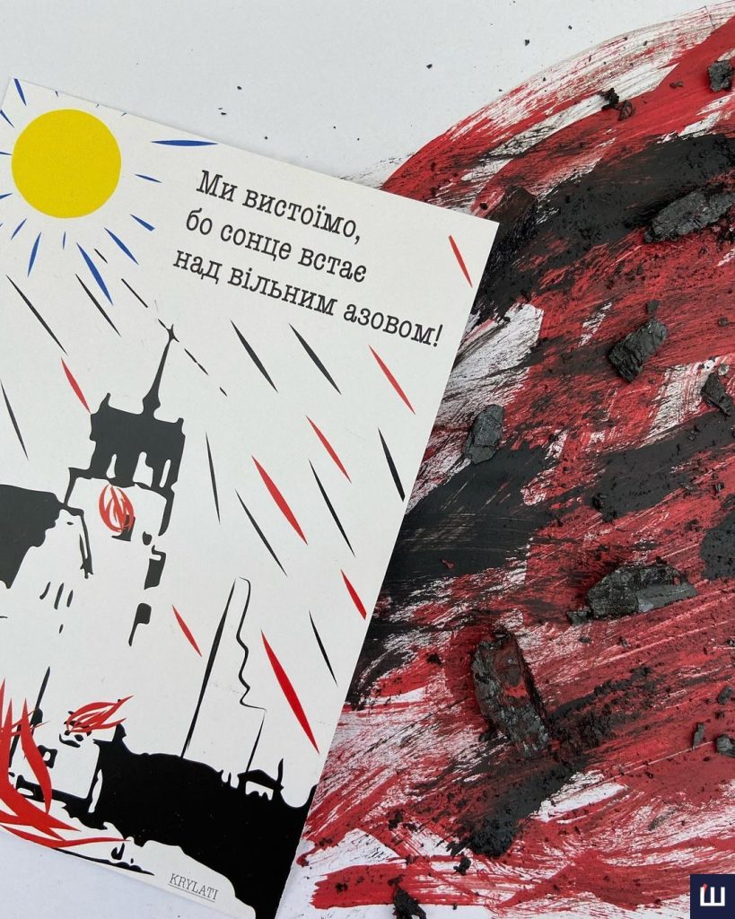 Аби допомогти хлопцям на Азовсталі, я зробила листівку. Там був дизайн будинку, який горів, коли ми виїжджали. І намальоване жовто-блакитне сонечко з ідеєю, що ми все одно вистоїмо, бо «сонце стає над вільним Азовом». Це стосувалося і бригади, й Азовського моря та регіону.