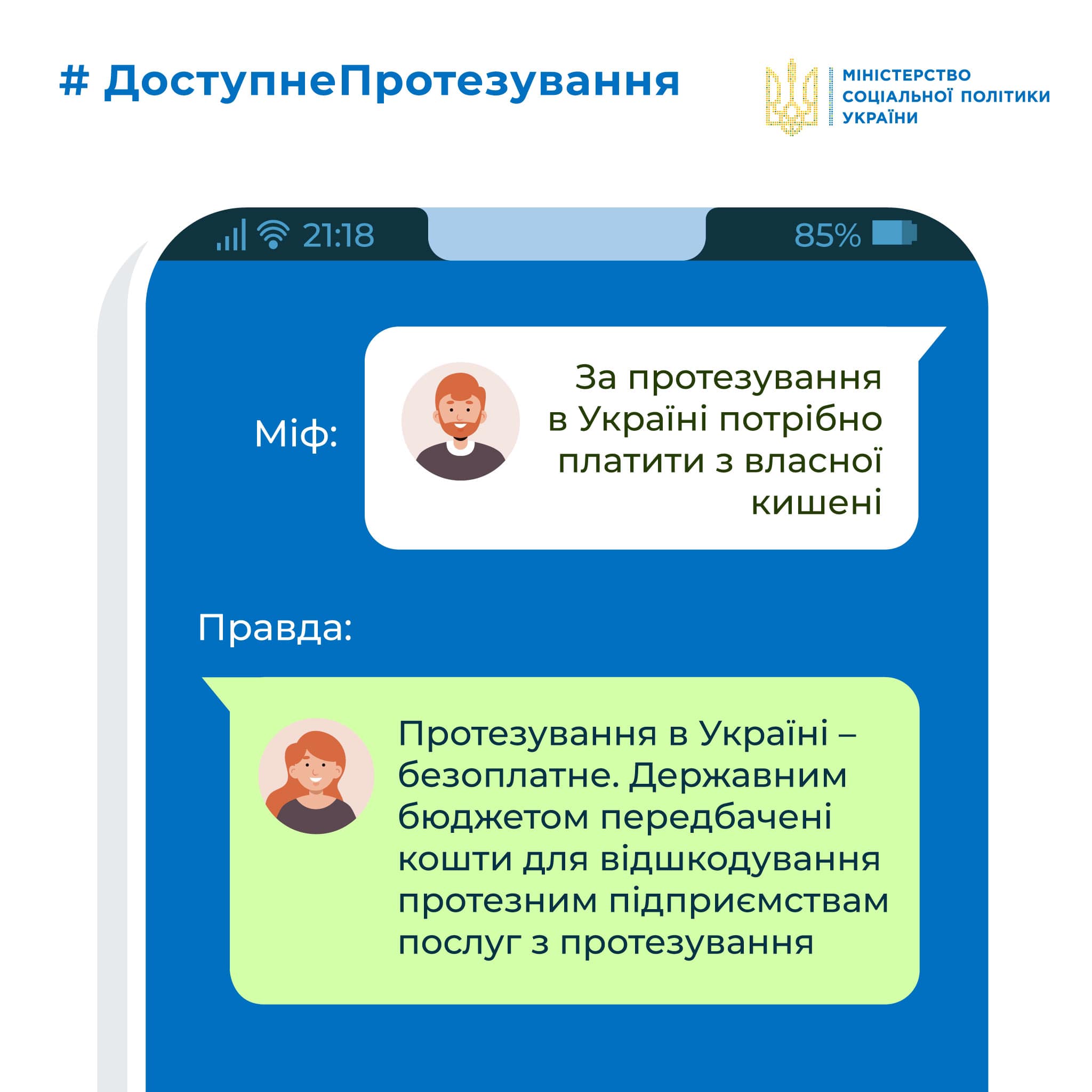 Протезування в Україні безоплатне і кожна людина, яка потребує забезпечення протезом може розраховувати на підтримку держави. Йдеться як про військових, ветеранів, цивільних, що постраждали внаслідок бойових дій, так і про всіх українців, яким потрібен протез.