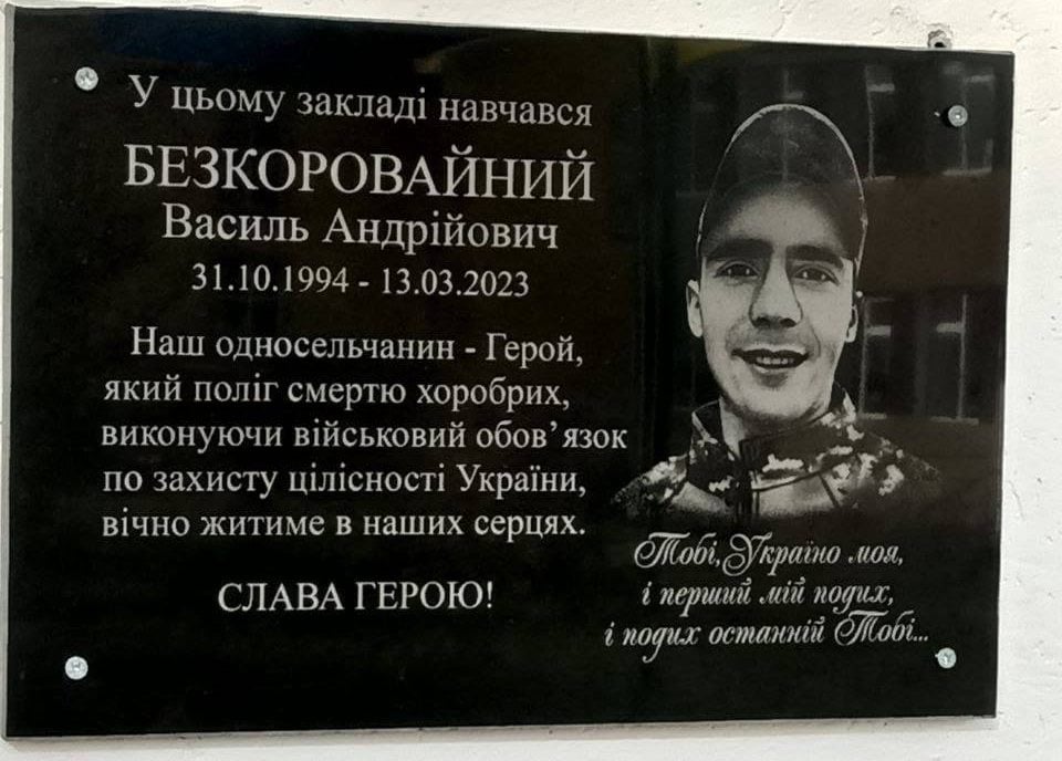 Меморіальну дошку відкрили в селі Коритному, що в Банилівській громаді. Пам’ятний знак розташували на будівлі школи, де навчався військовослужбовець.