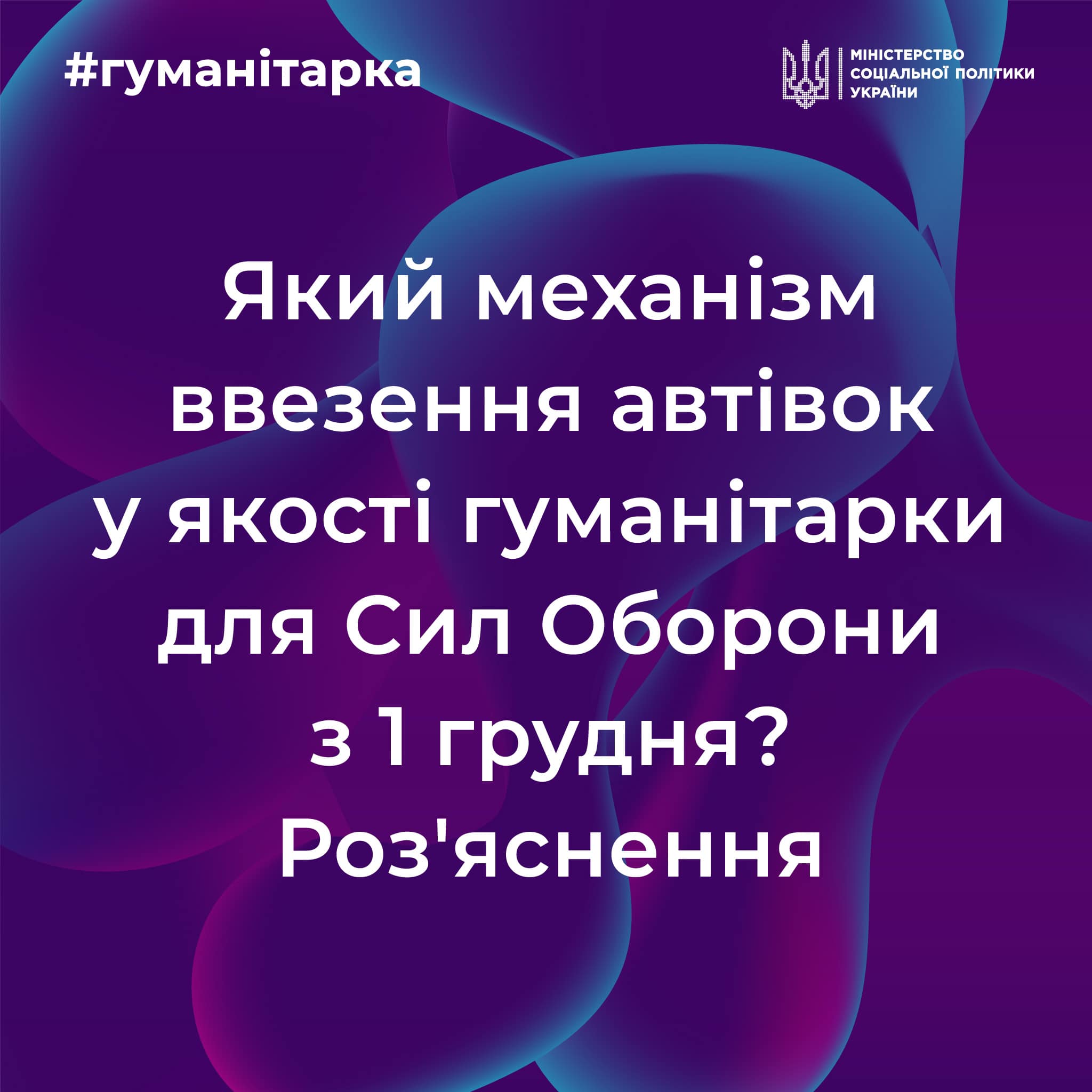Який механізм ввезення автівок у якості гуманітарки для Сил Оборони з 1 грудня?