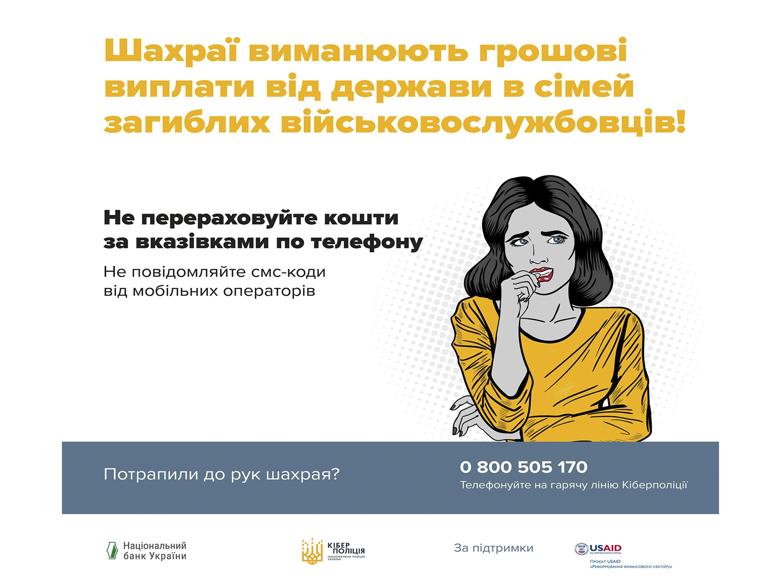 Зловмисники телефонують членам родин загиблих військовослужбовців, видаючи себе за працівників оператора мобільного зв’язку, та переконують надати конфіденційну інформацію про фінансовий номер, прив’язаний до банківських рахунків.