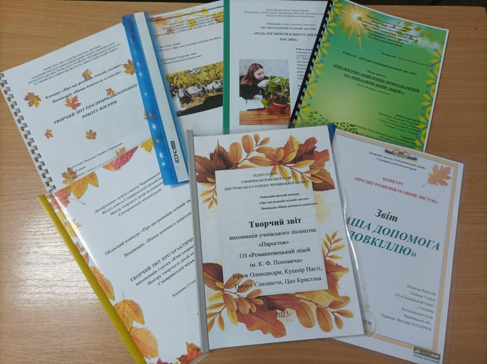 «Наша допомога довкіллю», «Розповідь осіннього листка» та «Краса осінньої природи».