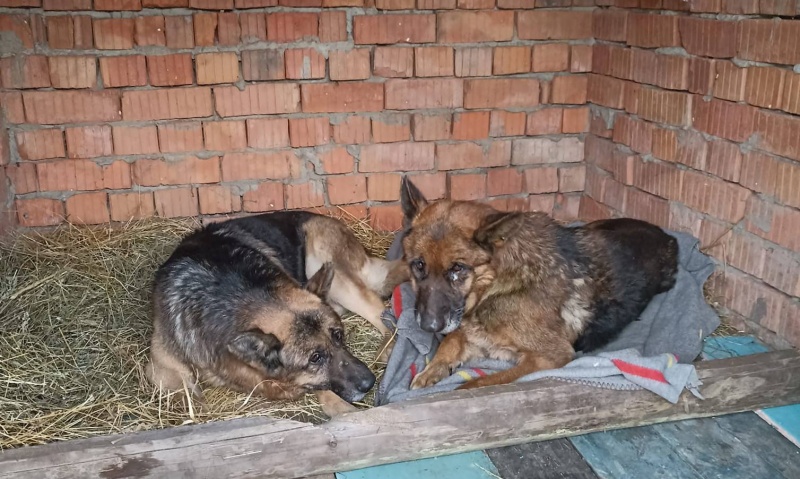 Дві вівчарки змогли забрати з поля, де їх викинули. Але один собака помер.