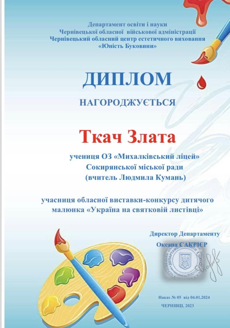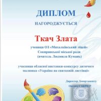 Дипломант – Злата ТКАЧ, ученицю ОЗ «МИХАЛКІВСЬКИЙ ЛІЦЕЙ» (керівник: Людмила КУМАНЬ);