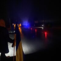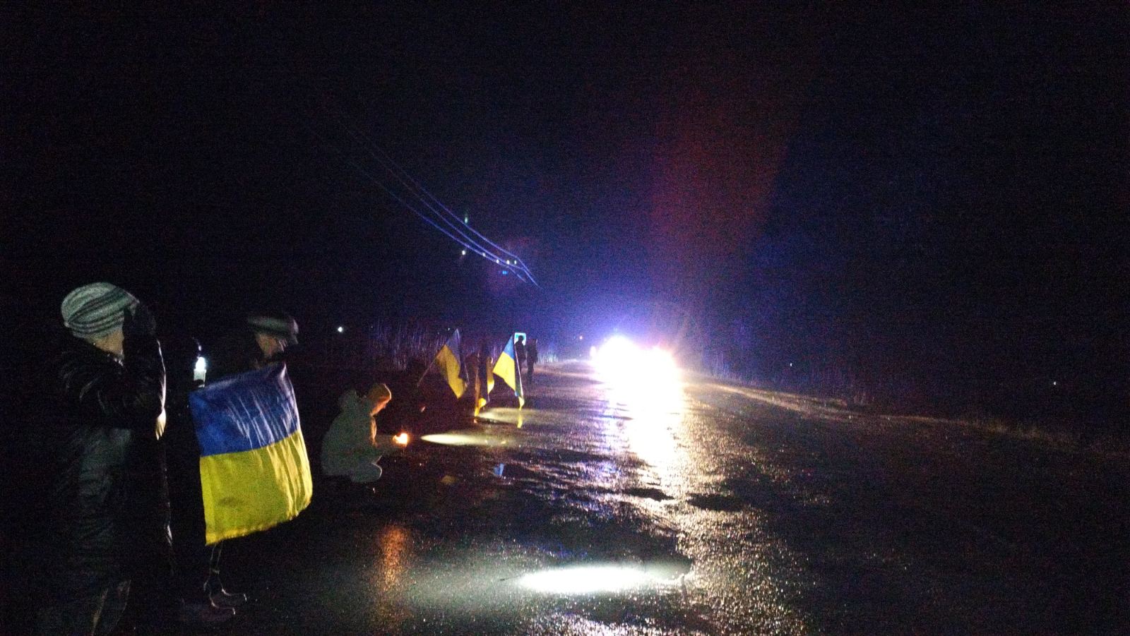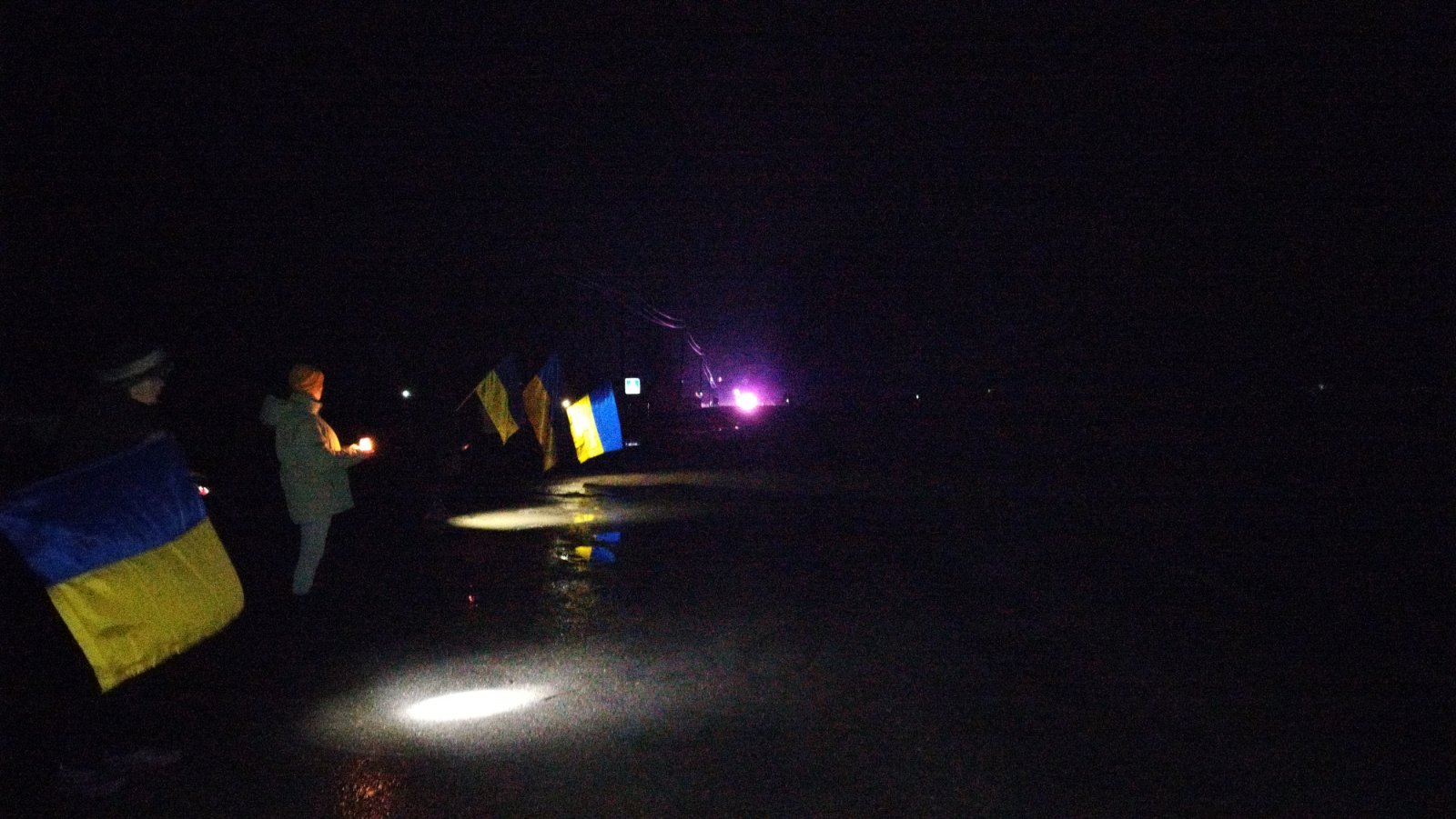 Жителі краю вшанували Героя стоячи навколішки, з прапорами в руках і лампадками.